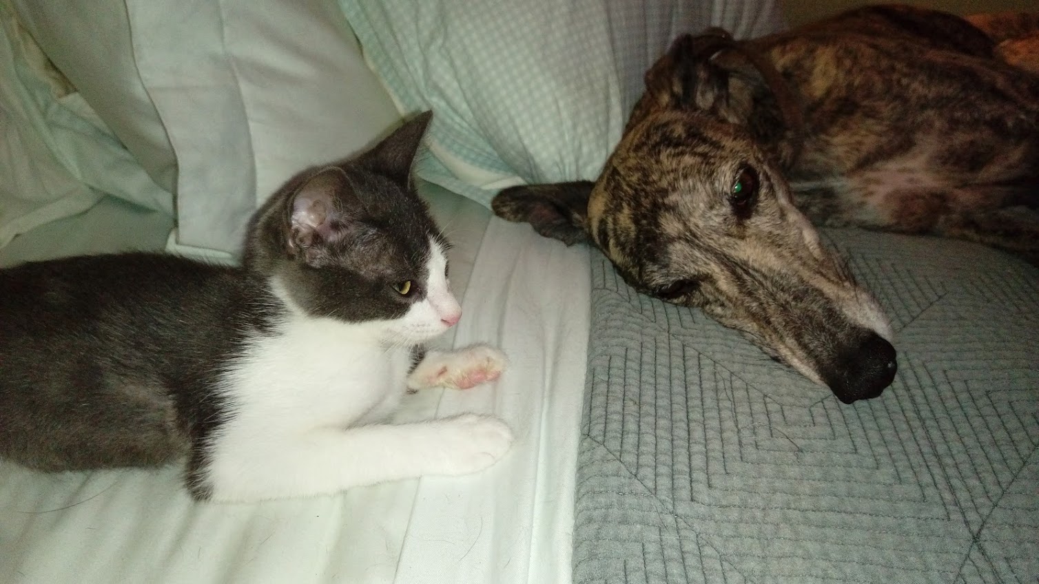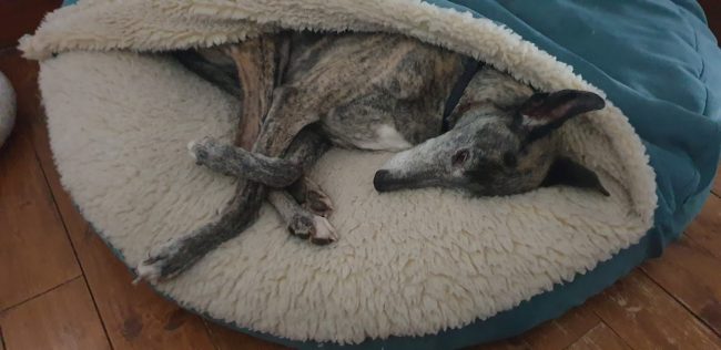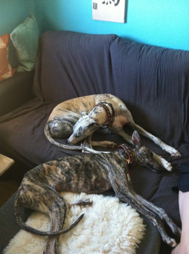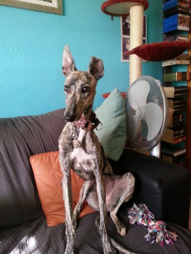 Has to be said that she is still daft, but so is Tito so they work well together. She is a little slower these days as age and a few injuries from before we got her have taken their toll but she still loves a run with Tito, and a snuggle with us on the sofa.