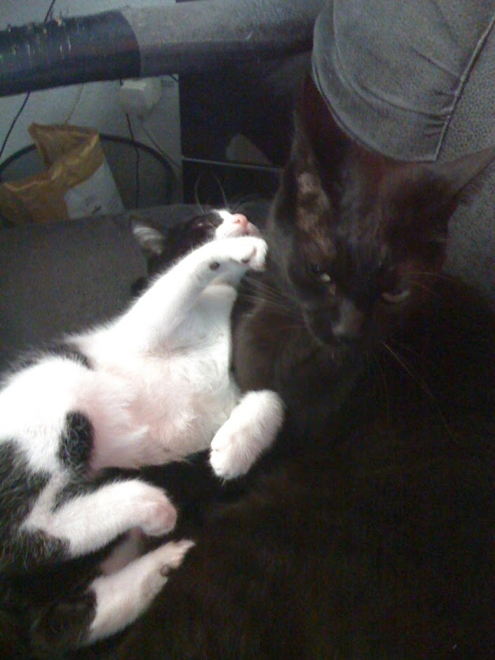 Always part of team Moreno along with Fleur since we have moved back to the UK two things have happened: he has become far more attentive with us and guests and will now happily sit on the sofa with humans (something he now does every night) and he has got a little tetchy with Tobi. Nothing major as they usually sleep within a foot or so of each other.