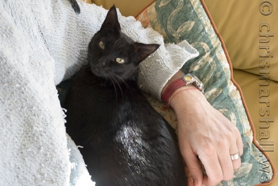 The reason things have been a little hectic around here this last week is ……….. Saidi! She is the cat that we have just adopted. She is one of several that Sands has been ‘sorting out’ with the sponsorship money that I raised. Not sure of her age, but she has had two sets of kittens, the last pretty recenty (don’t worry the kittens are all going off to a kitten sancturary soon), so she is a little older than Moreno and as you can see very similar indeed. Could even be his mother or sister.