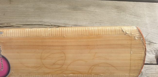 This was originally an SS TON Sourav Ganguly bat that had been used (and slightly neglected) by a high quality player, and had been retired with the usual signs of wear and tear associated with a cricket bad i.e. is just a fact of life that wood cracks, especially when used to hit a hard ball coming at you at a fast pace!